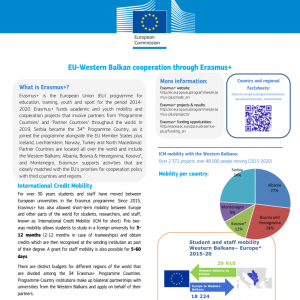 Erasmus+ je program Evropske unije (EU) za obrazovanje, obuku, mlade i sport za period 2014-2020. Erasmus+ finansira akademske projekte i projekte mobilnosti i saradnje mladih koji uključuju partnere iz „zemalja programa“ i „zemalja partnera“ širom sveta. 2019. godine, Srbija je postala 34. zemlja programa, pridruživši se programu zajedno sa državama članicama EU, plus Island, Lihtenštajn, Norveška, Turska i Severna Makedonija. Zemlje partneri se nalaze širom sveta i uključuju Zapadni Balkan: Albaniju, Bosnu i Hercegovinu, Kosovo* i Crnu Goru. Erasmus+ podržava aktivnosti koje su usko usklađene sa prioritetima EU za politiku saradnje sa trećim zemljama i regionima.