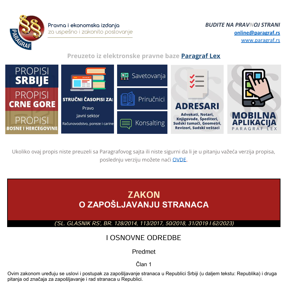 This law regulates the conditions and procedure for the employment of foreigners in the Republic of Serbia (hereinafter: the Republic) and other matters of importance for the employment and work […]