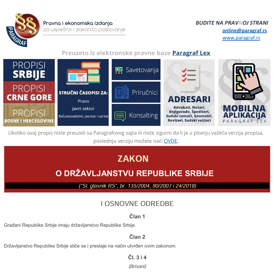 Лаw он Цитизенсхип оф тхе Републиц оф Сербиа
