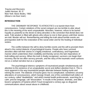 this is the meaning of the word unspeakable. Atrocities, however, refuse to be buried. Equally as powerful as the desire to deny atrocities is the conviction that denial does not work. Folk wisdom is filled with ghosts who refuse to rest in their graves until their stories are told. Murder will out. Remembering and telling the truth about terrible events are prerequisites both for the restoration of the social order and for the healing of individual victims.